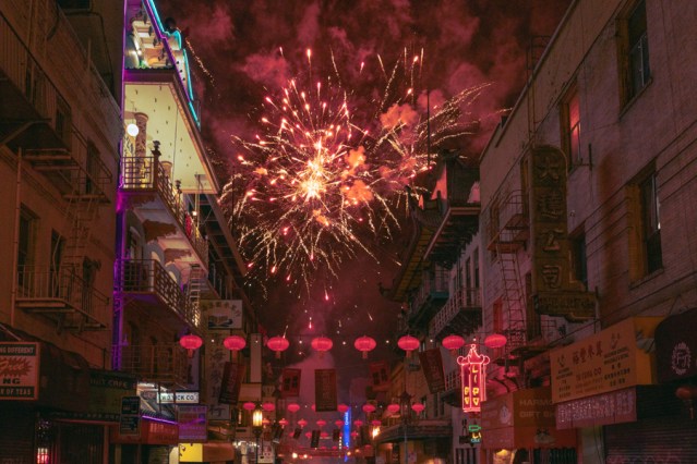 San Francisco’s Chinatown celebrates the Year of the Fire Horse with fireworks on Monday night. Feb. 16. Red lanterns are a common Lunar New Year decoration, symbolizing good fortune and prosperity as communities welcome the new year.