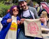 Phyllis Nabhan (left), owner of Gaslight and Shadows Antiques at 2335 Clement St., poses with Jake Savas, owner of The Wishing Well Workshop at 252 Clement St., at the “Growing Together” event at the Richmond Neighborhood Center on April 24.