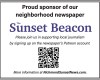 Advertising opportunities for businesses that support the Sunset Beacon with a Patreon account.