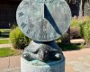 Atop the column is a bronze turtle representing the slowness of the passage of time. Atop of the turtle’s back is a vertical bronze hemisphere, with a map of the Americas on the curved side. The flat side of the hemisphere has inscribed portraits of the three explorers above a sundial with the Latin inscription “horam sol nolente nego,” translated by the Colonial Dames as “if the sun is unwilling I don’t tell the time.”