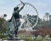 Is the naked bronze man with a cape and helmet in Golden Gate Park’s Music Concourse Roman or Greek?